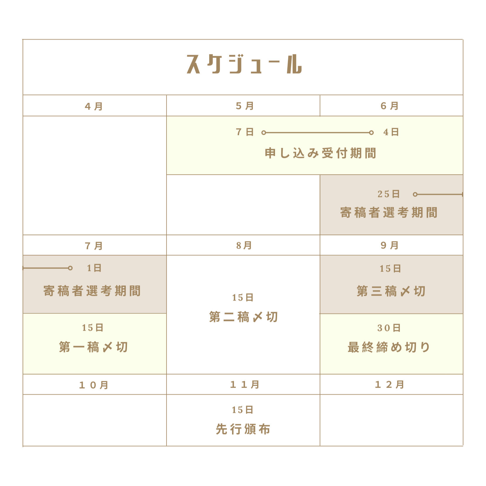 (主な連絡事項はディスコードで通達します)【寄稿作品の審査について】匿名での提出となるため、個人的な理由をもって掲載をお断りすることはありません。